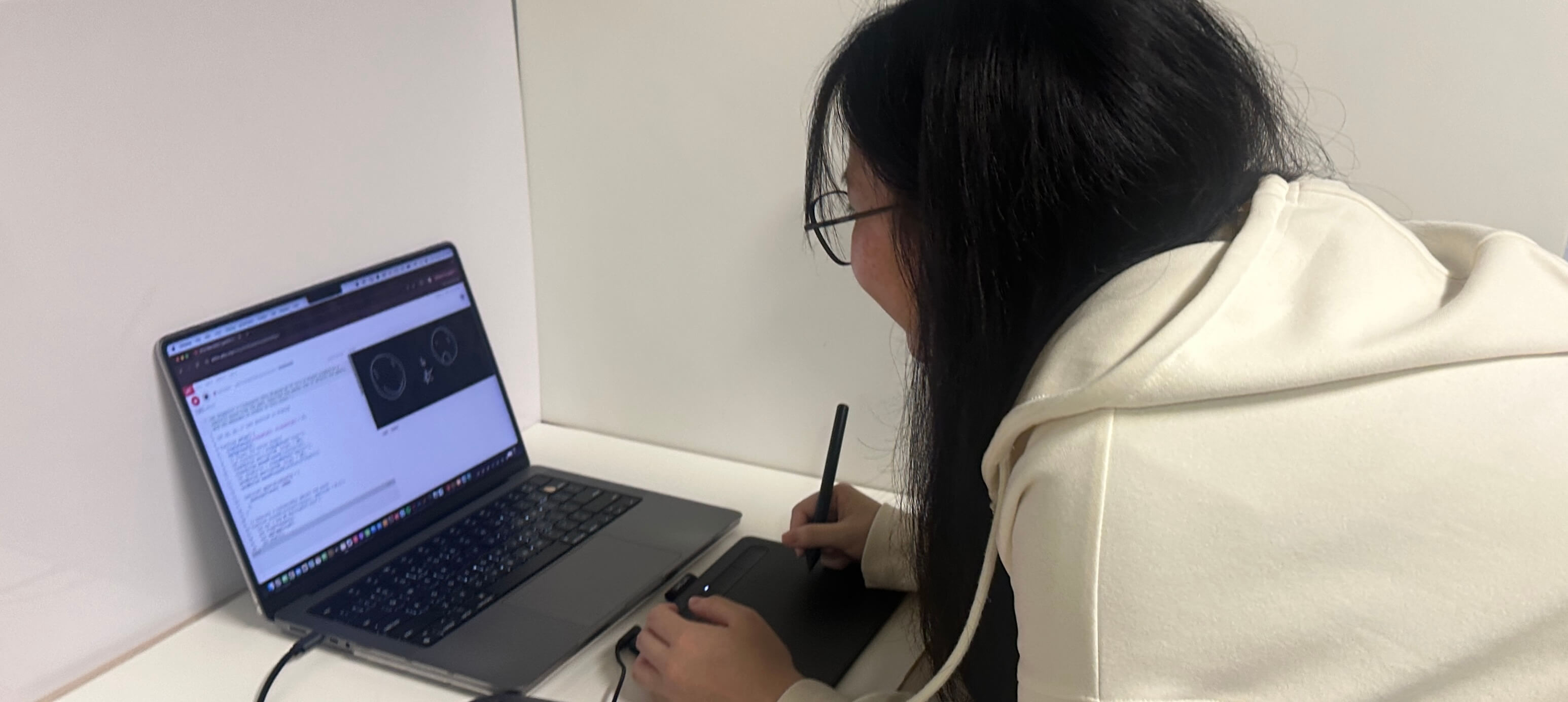 Users will start by testing a mouse, trackpad, and Wacom tablet, then choose the one they feel most comfortable using for drawing. This initial test provides valuable insights, as the drawing tool selected impacts the overall experience on the digital interface.