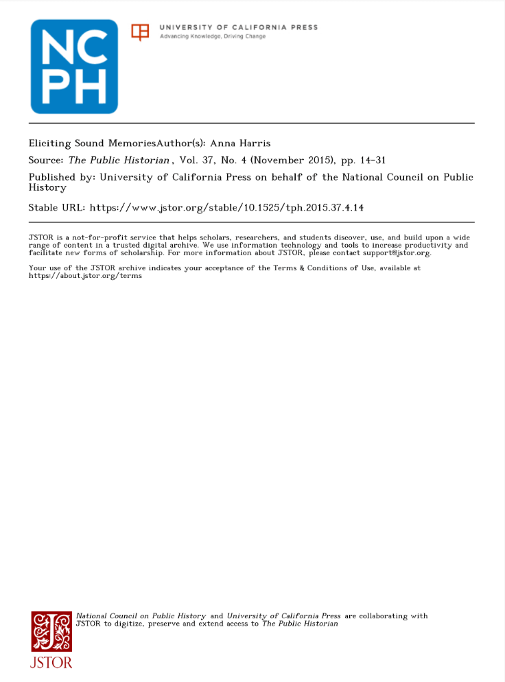 Found 2 readings that are helpful and very relevant to my topic. The first journal talks about how sounds can be powerful triggers to memory compared to traditional ways like photographs or texts.